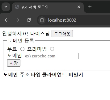 계정은 기존에 8001에서 만들었던 계정을 사용하고 로그인 전 화면과 로그인 후에 화면은 아래와 같다.