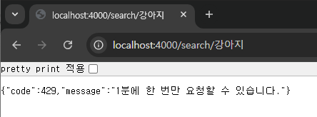 하지만 1분에 1번만 호출되도록 제한했기 때문에 다시 호출하면 정상 호출 안된다.