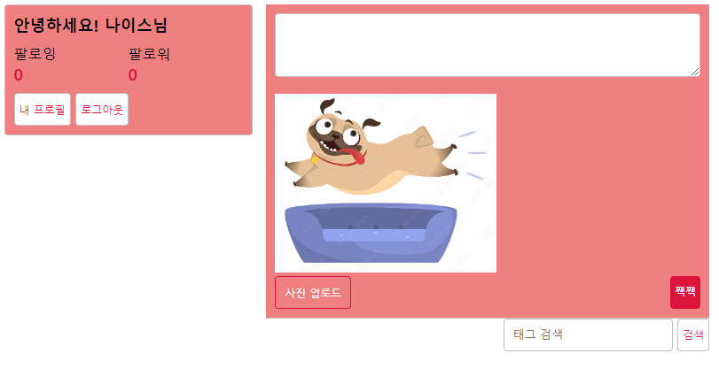 로그인 기능까지 코드 작성한 뒤에 로그인 했을 때 성공한 화면