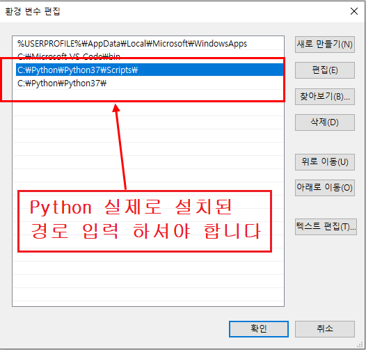 Python이 실제로 설치된 경로를 입력해주셔야 합니다.