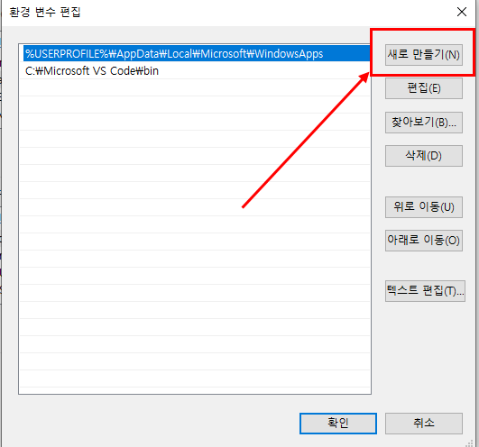 환경 변수 클릭