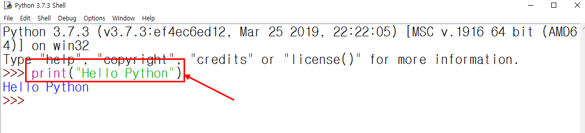 IDLE 화면에서 바로 print 를 통해서 실행하였을 때 화면입니다.