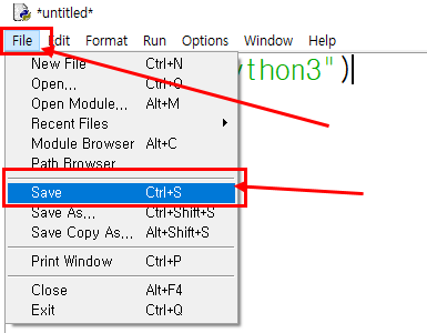 IDLE 에서는 별도로 확장자명을 지정하지 않아도 자동으로 저장됩니다.