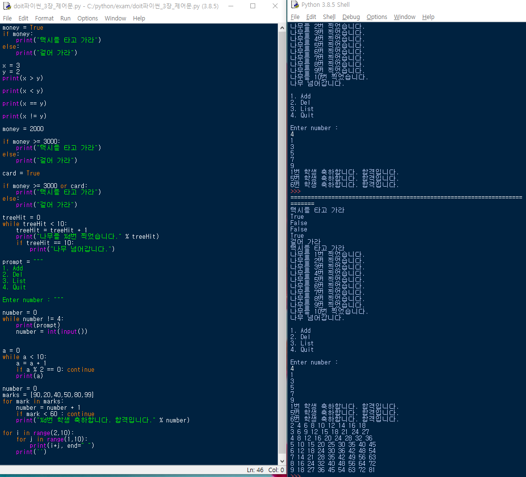if문, while문 ,for문 의 다양한 예제와 차이점과 어떻게 사용해야 될지에 알게 되었습니다.
