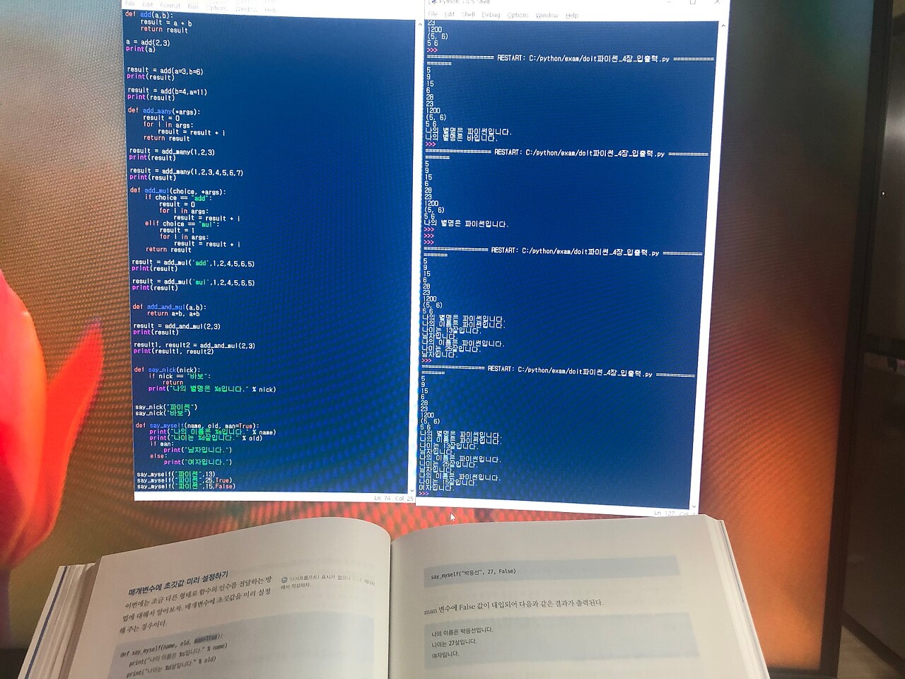 함수에 대해서 다양한 케이스에 대해서 설명되어 있어서 좋았습니다. 결과값이 없거나 입력값이 없는 함수, 입력값이 몇개가 될지 모르는 함수 등 다양한 예를 들어주시고 실제로 적용할 수 있을만한 함수를 만들어 보면서 쉽게 익힐 수 있었습니다. 실제로 파일 읽고 쓰기 예도 직접 해볼 수 있게 설명되어 있어서 좋았습니다.
