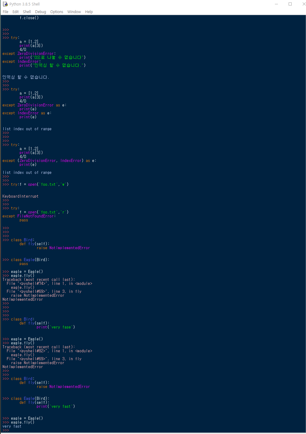 예외처리는 에러가 발생할 때 처리할 수 있는 다양한 방법들에 대해서 설명되어 있었습니다. 몇가지 에러를 실제로 발생시키고 그 에러를 어떻게 예외처리 하는지 잘 설명되어 있습니다. 내장함수와 외장함수는 개발할 때 필요한 유용한 함수들이 소개되어 있고 실제 예까지 설명되어 있습니다. 종류가 많아서 당장 다 사용하지는 못하지만 필요할때마다 찾아서 유용하게 사용할 수 있을 것입니다.