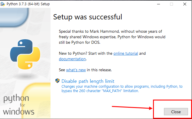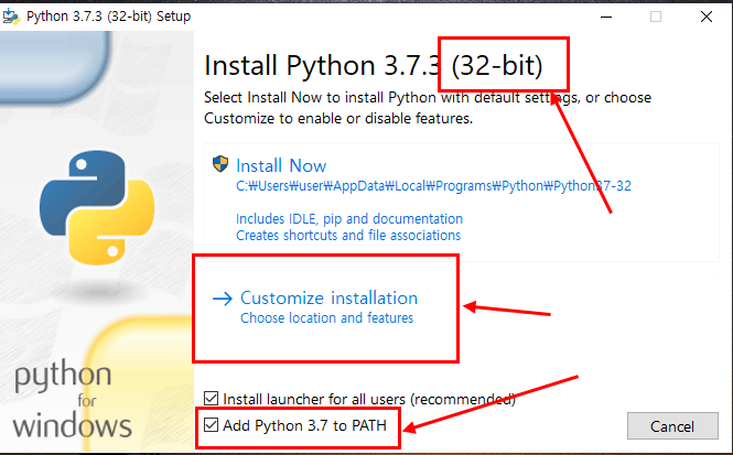 아래에 파이썬 설치 경로가 자동으로 출력됩니다.