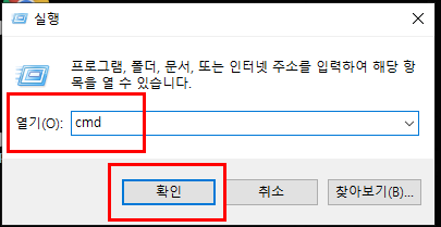 설치가 완료된 경우 명령 프롬프트 ( window 버튼 + R 을 클릭한 후에 cmd 입력) 을 실행해주세요