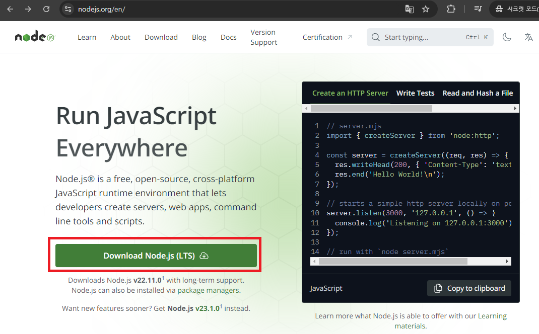 | Node.js 다운로드 설치 최신버전 22버전 (0) | 2024.10.29 |