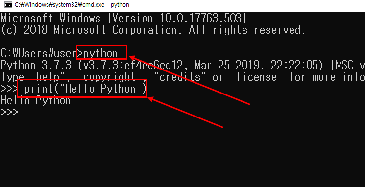 print 명령어를 통해서 Hello Python 을 출력한 화면입니다.