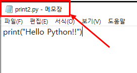 메모장에서 위와 같이 print 함수를 입력한 후에 저장 합니다.