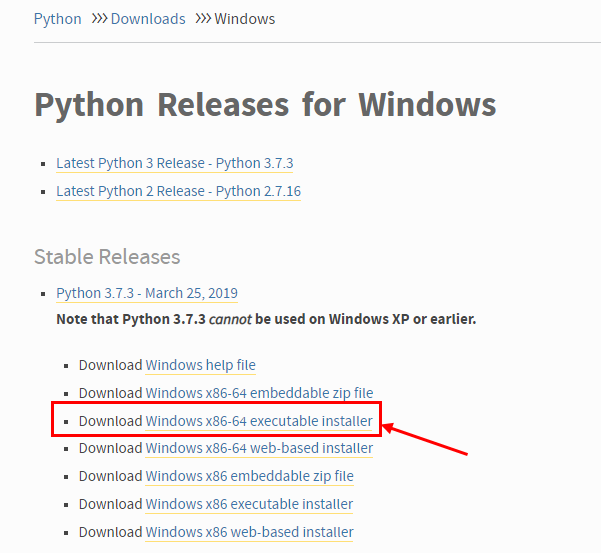 Dowloads를 클릭 하시거나 Dowloads에 마우스를 가져가서 바로 Python 3.7.3을 선택하셔도 됩니다.